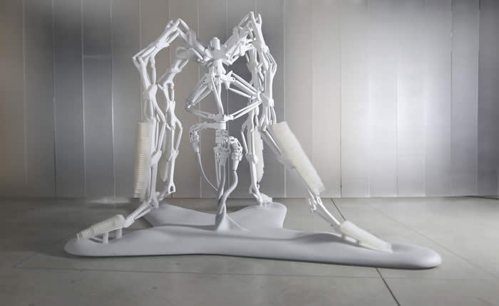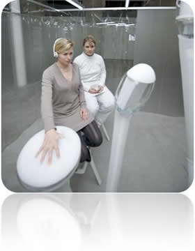 Fr - Une « Architecture des humeurs », ou les prévisions fantasmagoriques du jour où la programmation d’un espace pourrait s’appuyer sur les humeurs de ses futurs occupants. Une vision imaginée par l’agence R&Sie(n), architecte François Roche, en collaboration avec des chercheurs et le responsable du lieu, David Edwards. Elle s’est tenue entre avril et mai (à Paris) dans un espace blanc laboratoire. A l’entrée, un test individuel au son d’une voix hypnotique qui, suivant les mouvements et variations de la main tentait de décrypter les « émissions neurobiologiques » pour capter le désir. Un architecte pourrait un jour y lire des paramètres à entendre pour proposer à son client un habitat idéal... Le long du parcours, une machine attachante, un robot extrudeur de béton équipé de pinces pour créer une structure de fils tressés dans un effet organique. Cet univers intrigant et ludique fondé sur un croisement de disciplines artistico-scientifico-architecturales, plongeait le visiteur dans l’imaginaire.